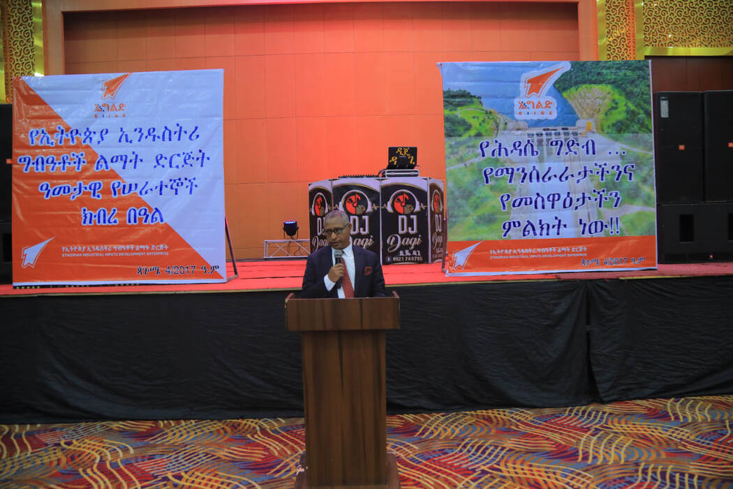 The leaders and employees of the Ethiopian Industrial Inputs Development Enterprise celebrated the successful performance of the organization’s 2017 E.C budget year and the completion of the Grand Ethiopian Renaissance Dam (GERD) on April 4, 2017.